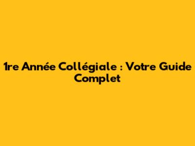 1re Année Collégiale : Votre Guide Complet